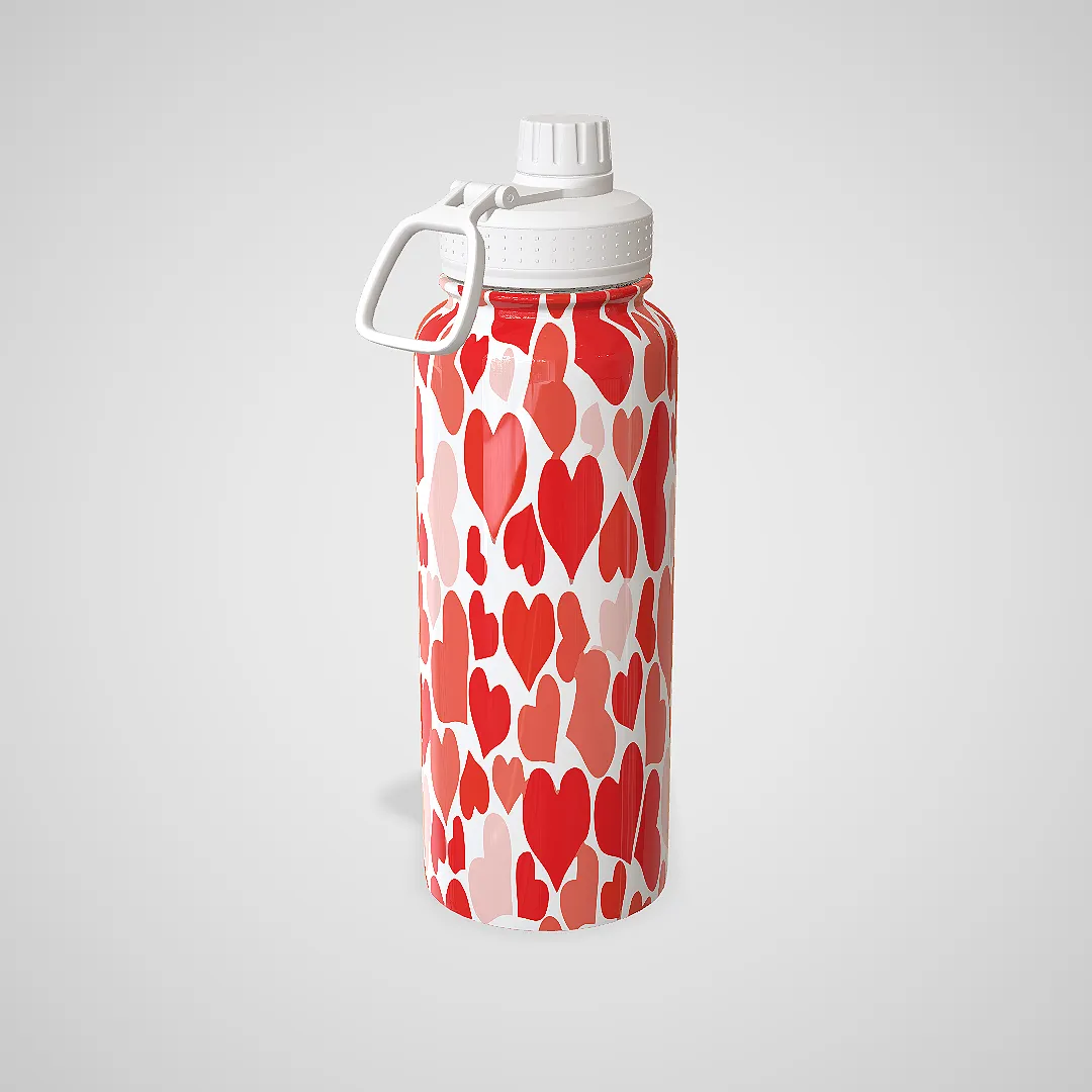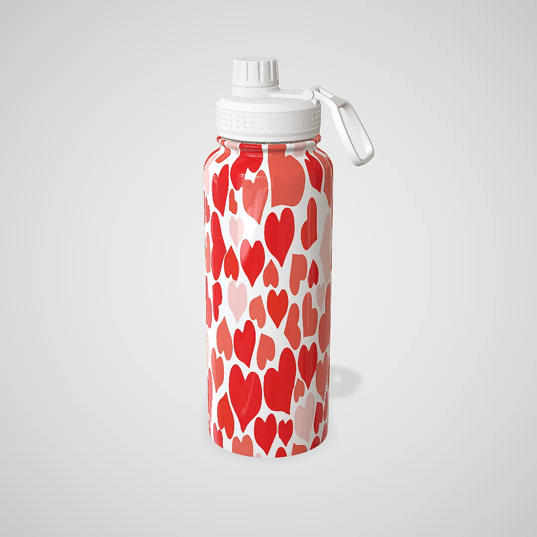 💘 Garrafa Térmica Personalizada Com Alça Dia dos Namorados – Corações